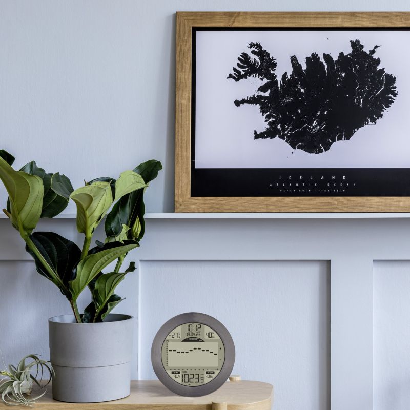 What makes it stand out are its precise measurements, its maritime appearance and registered TFA design, as well as its clear display. But even if you are more drawn towards the mountains or off road, the METEOMAR provides you with all the important weather information. With a tolerance of +/- 1 hPa (resolution 0.1), this weather station provides accurate information about air pressure and displays it in a very detailed graph for 1, 3 or 24 hours. With two alarm functions, you can keep an eye on the change in air pressure within the last 3 hours and the last hour. Maximum and minimum values for temperature, humidity and air pressure can either be reset automatically on a daily basis or kept in view over any period of time by means of a manual reset.