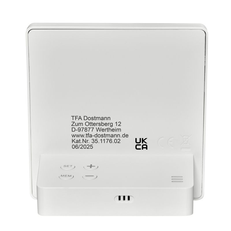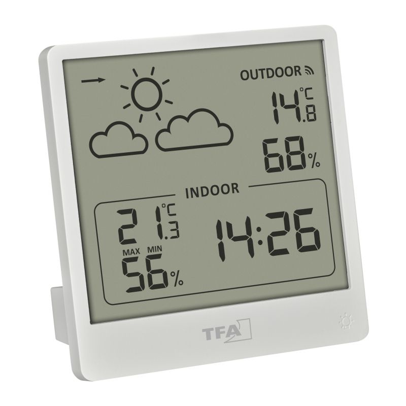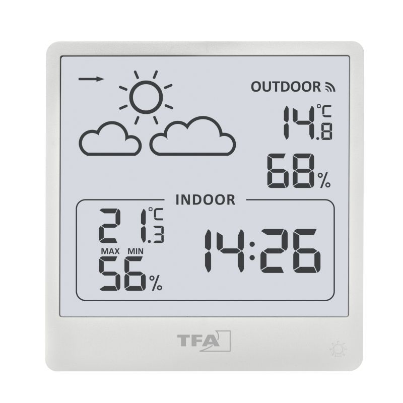 - Външна температура и влажност чрез безжичен външен предавател (433 MHz), обхват до 60 м (в свободно поле)